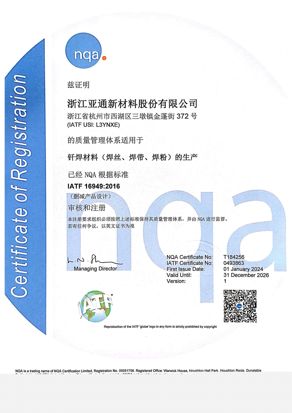 2016年獲批建設“浙江省亞通先進釬焊材料重點企業研究院”;榮獲“國家科技進步二等獎”
