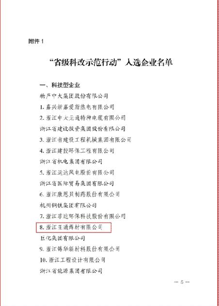 浙江亞通焊材有限公司成功入選“省級科改示范行動”
