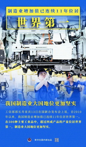 自2010年以來,我國制造業(yè)增加值已連續(xù)11年位居世界第一